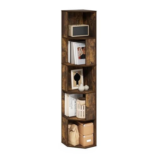 SONGMICS HOME Étagère d'angle à 5 Niveaux, Assemblage Ultra-Rapide sans Outils Toolless, Étagère de Rangement, 38,3 x 27 x 139 cm, pour Salon, Chambre, Cuisine, Marron Rustique LBC610K01