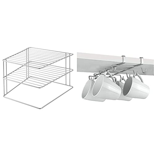 Metaltex 36400239095 Étagère d'angle Palio à 2 Étages 25 x 25 x 19 cm & 36492839094 MYMUG Porte 10 Tasses Métal Argent 28 x 14 x 6 cm