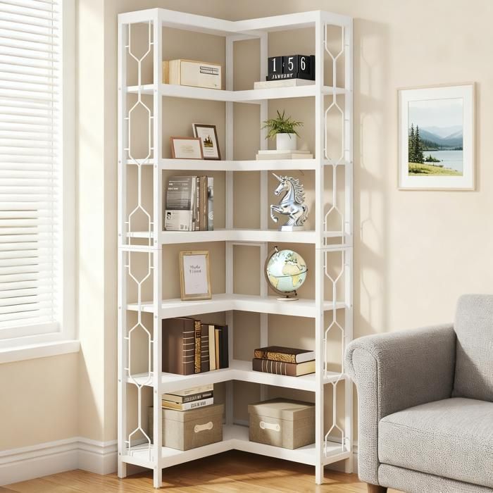 Bibliothèque dangle 200 x 60 x 60 cmGrande étagère dangle Industrielle étagère dangle sur Pied Blanc