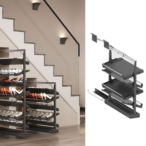 Étagère à chaussures coulissante, empilable et rotative, avec rail de guidage rétractable pour une capacité de charge élevée. Gain de place garanti dans un placard. Hauteur réglable de 158 à