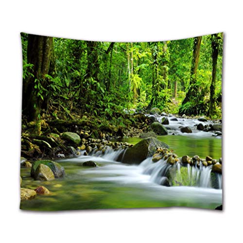 A.Monamour Tapisserie Murale Été Montagne Ruisseau dans Une Forêt Tropicale Rain Green Arbres Nature Paysage Impression Tissu Tapisserie Murale Tentures Murales pour Chambre Salon Dortoirs 180X200Cm