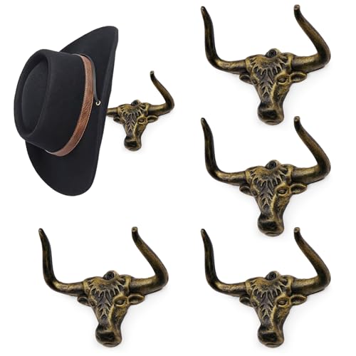 Filano Lot de 4 porte-chapeaux de cowboy muraux modernes en métal pour chapeaux de cowboy en fonte - Crochets de rangement et d'exposition dans un placard, une chambre à coucher, un salon - Or antique