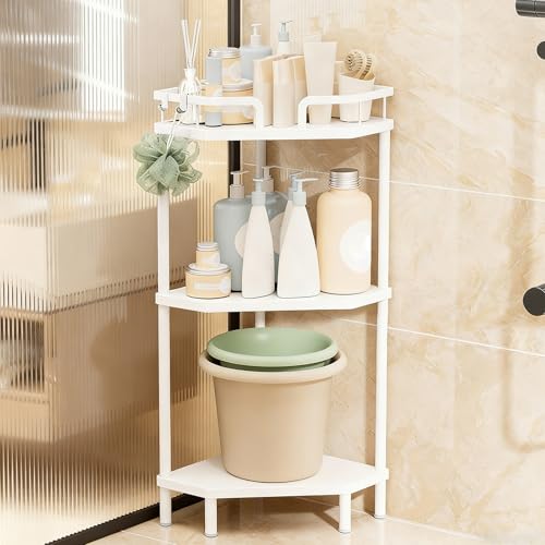 KJHWYXD Etagere De Douche sans Percage, étagère d'angle Salle De Bain, Porte Savon Gel Douche Debout, avec Pieds Réglables Et 2 Crochets, Rangemen(Size:3 Layers (Equal Height 31cm),Color:Blanc)