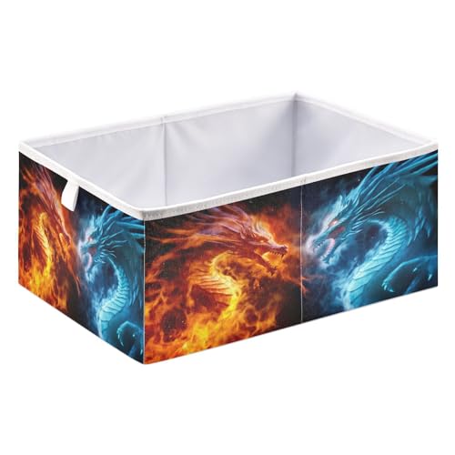 JUMBEAR Panier de rangement pliable en forme de dragon de feu et de glace, panier de rangement pour jouets, boîte de rangement pour la maison, étagère de placard, 40 x 27 x 17 cm