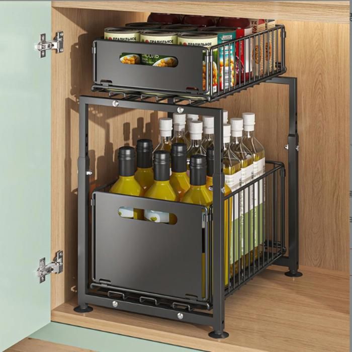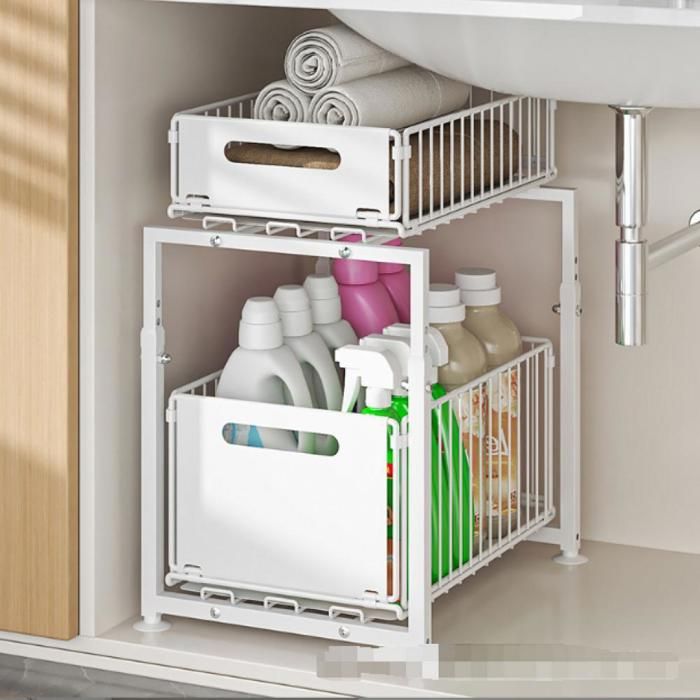 KD Essentials – Organiseur de meuble de cuisine – Solide métal solide, 2 étages (étagère de placard de cuisine pour plus de rangement sous l'évier ou dans l'armoire de nettoyage)