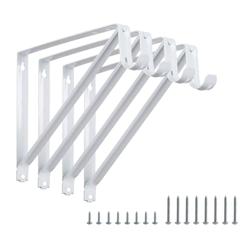 Lot de 4 supports de tringle de placard robustes - Support mural pour étagère de placard et tringle - 27,9 x 24,1 cm - Avec crochet - Blanc avec vis HOME MASTER HARDWARE