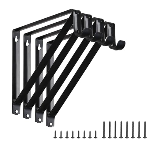 Home Master Hardware Lot de 4 supports muraux robustes pour étagère et tringle de placard, noir, avec vis
