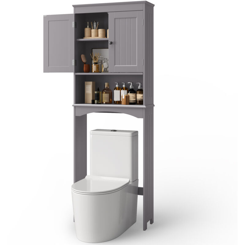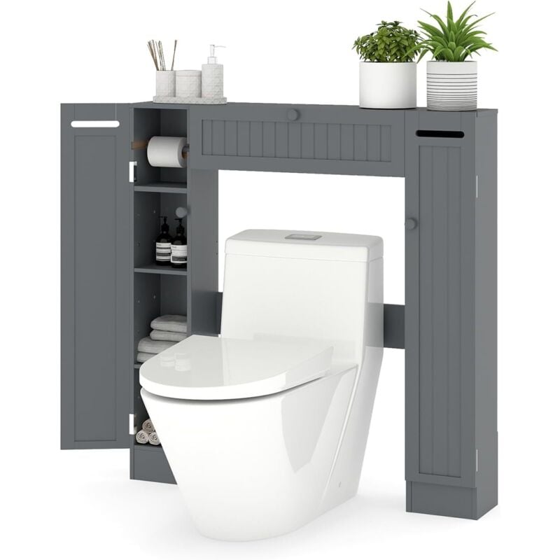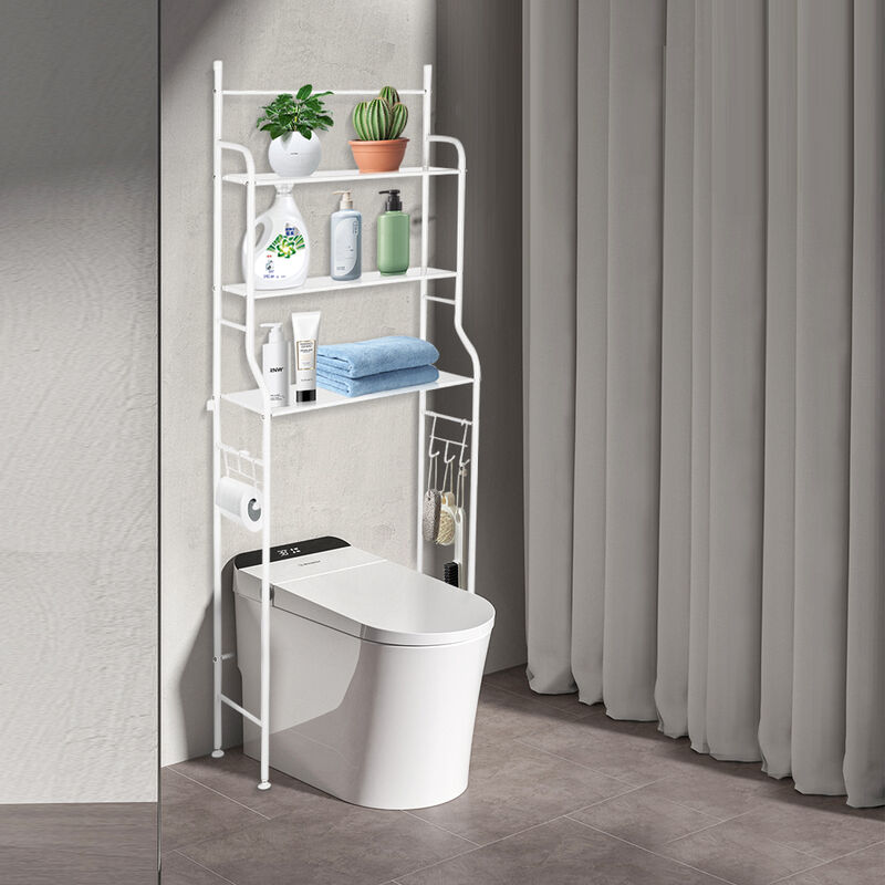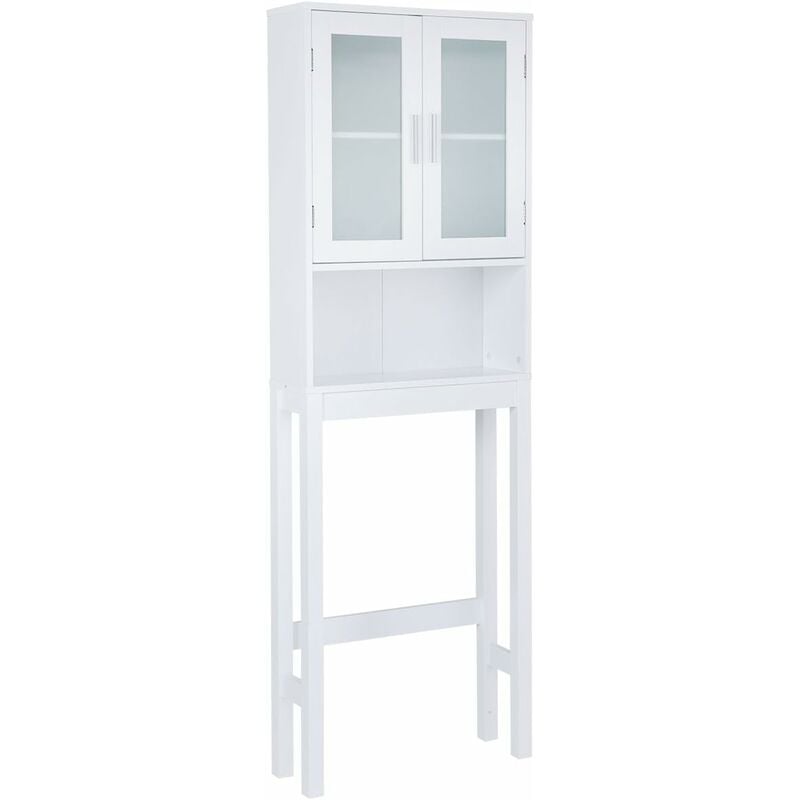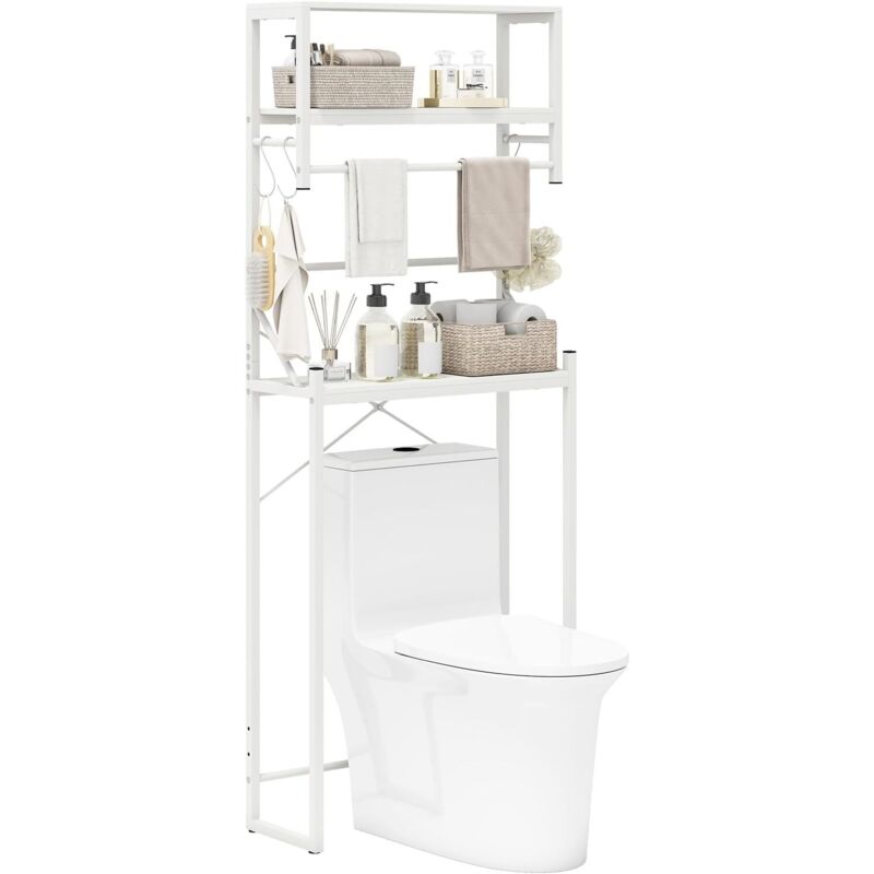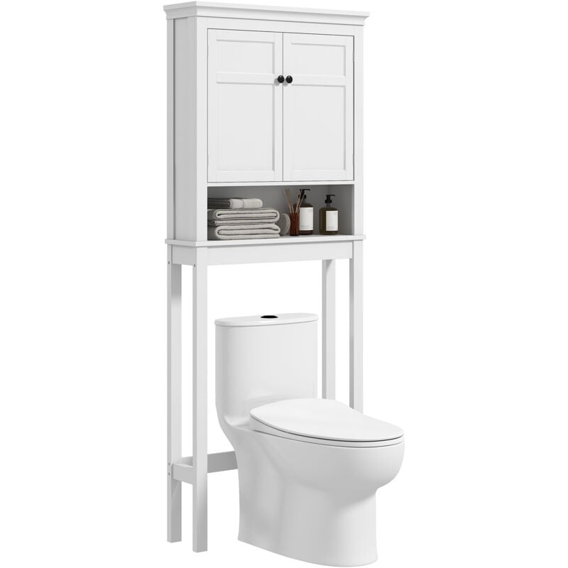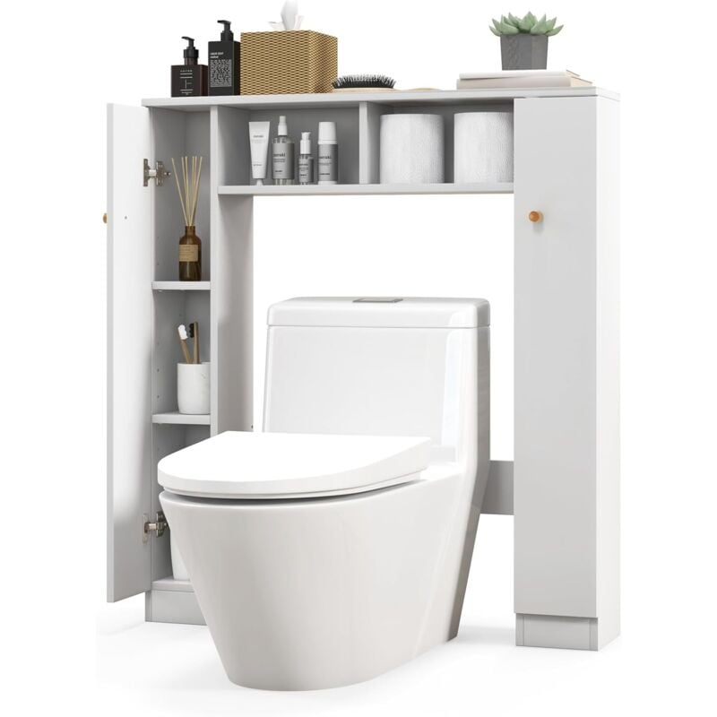 Meuble rangement au-dessus toilettes avec porte coulissante étagère dessus wc étagère réglable blanc