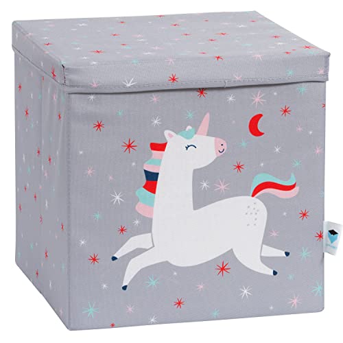 LOVE IT STORE IT - Cube de Rangement 33x33x33 cm - Tissu Ultra Résistant avec Couvercle - Renforcement Bois - Pliable - Motif Licorne - Chambre Enfant, Étagère Cube