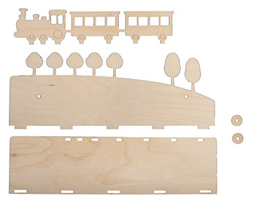 Rayher 62976505 Etagère murale enfant, train, bois naturel FSC MixCred, 1 Kit, 35X14X10cm, décoration, chambre d’enfant
