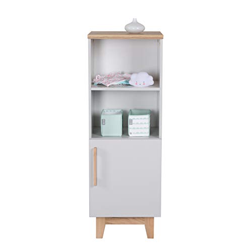roba Étagère Enfant Caro - 2 Niches et 1 Porte à Fermeture Douce - Bibliothèque sur Pied - Gris Clair/Décor Bois
