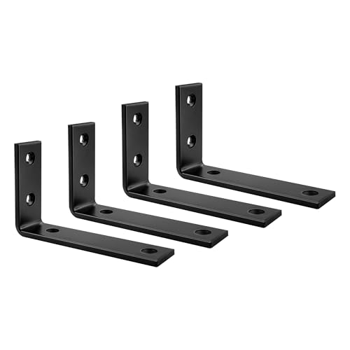 SAYAYO 4 Pièces Équerre Étagère Murale Charge Lourde, Supports d'Étagère Métal 5MM d'Épaisseur à Angle Droit de 90°, Fixation Flottante Support pour Salon Chambre Cuisine, 125MM * 75MM, Noir