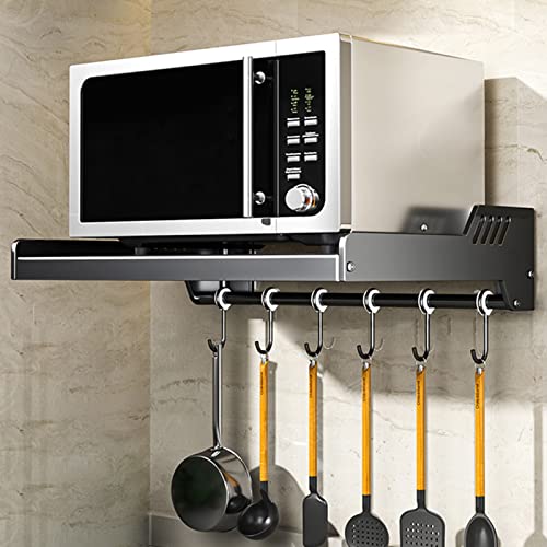 Étagère De Four À Micro-Ondes Étagère Murale De Cuisine Étagère De Support De Four Électrique Durable Étagère Murale, Organisateur De Stockage De Batterie De Cuisine (Color : Black-a, Size : 49cm/19.3