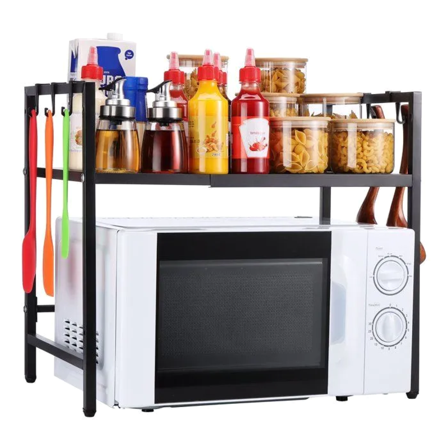 Support extensible en métal étagère pour four à micro-ondes 3 crochets offerts noir