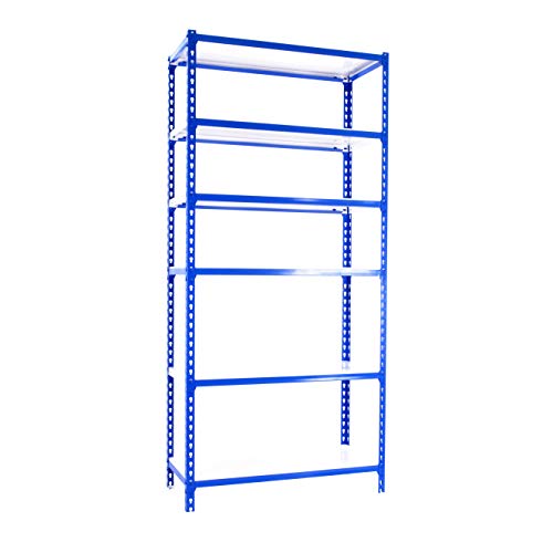 Simon Rack Étagère Rangement et 6 Niveaux, 180 kg Capacité de Charge et Point de Flexion, 2500x900x300 mm, Étagère Charge Lourde, Étagère Garage, Bleu/Blanc - Simonclick