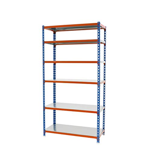 Simon Rack Étagère Rangement et 6 Niveaux, 180 kg Capacité de Charge et Point de Flexion, 2500x900x400 mm, Étagère Charge Lourde, Étagère Garage, Bleu/Orange/Galvanisé - Simonclick