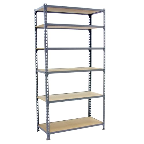 Simon Rack Étagère Rangement et 6 Niveaux, 180 kg Capacité de Charge et Point de Flexion, 2500x900x400 mm, Étagère Charge Lourde, Étagère Garage, Gris - Simonclick