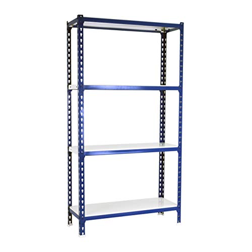 Simon Rack Étagère Rangement et 4 Niveaux, 180 kg Capacité de Charge et Point de Flexion, 1500x900x400 mm, Étagère Charge Lourde, Étagère Garage, Bleu/Blanc - Simonclick