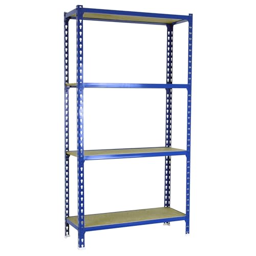 Simon Rack Étagère Rangement en Route à 4 Niveaux en Boix, 75 kg Capacité de Charge et Point de Flexion, 1575x900x500 mm, Étagère Charge Lourde, Étagère Garage, Bleu/Bois - Maderclick