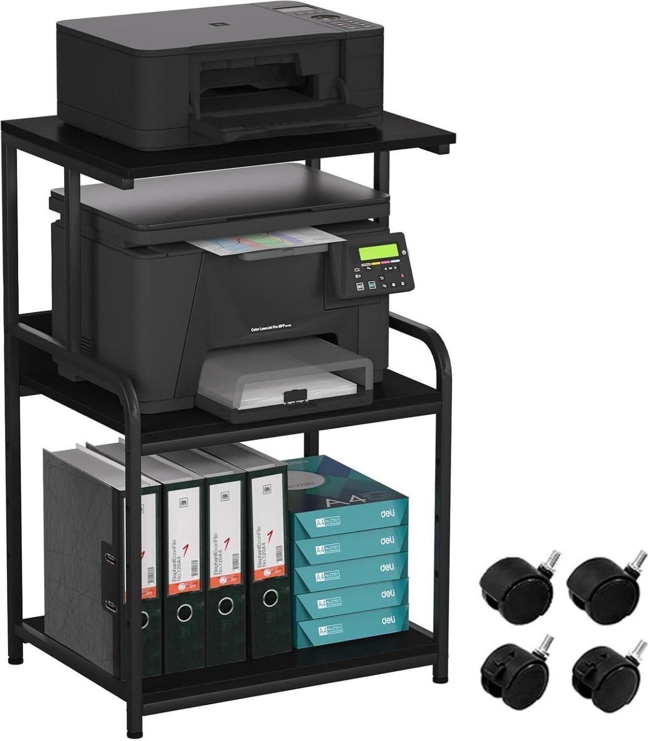 support d'imprimante à 3 étages avec roulettes, étagère métallique pour imprimante - noir