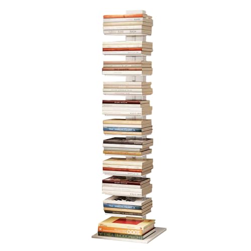 FJYAWEN Bibliothèque en Métal à 9 Niveaux, étagère à Livres Haute Et étroite, étagère à Livres Invisible, étagère d'angle à Colonne Vertébrale Verticale, étagère De Rangement Polyvalente,White