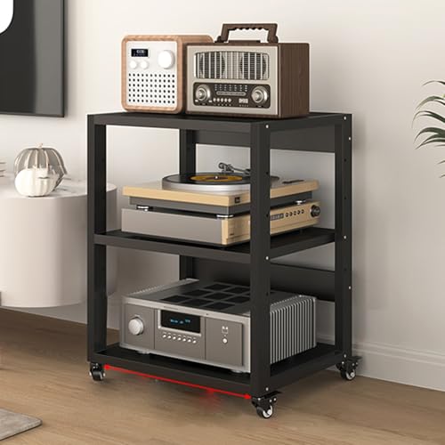 Support pour Platine Vinyle Ste Stand avec Porte-disques, Style Moderne, sur roulettes ; étagère à Cinq Niveaux o-VideoStand, Meuble pour Platine vidéo, routeur, étagère DVD, Meuble TV d'ang