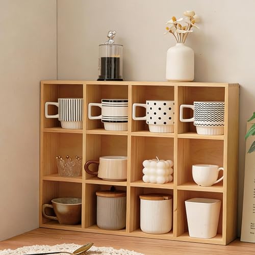 Xalteafe Tablette Murale,Support Tasse A Cafe,éTagèRe Murale en Bois,Compartiments De Rangement en Bois,Etagere Mug,Peu Encombrant,Multi-Grid Design,pour Plantes Et Tasses,PréSentoir