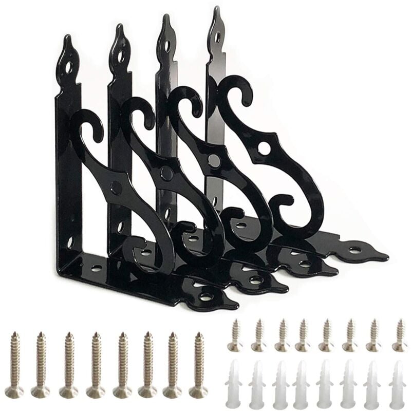 VURAHOME - 4PCS Support d'étagère Mural Métal-Support Équerre pour Étagère Triangulaire en Fer forgé pour Salle de Bains, Cuisine (4PCS)