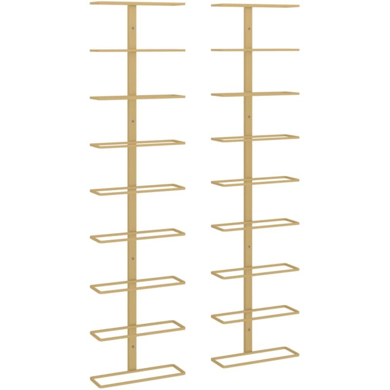 Décoshop26 - Set de 2 casiers range bouteilles étagère de rangement vin mural pour 9 bouteilles en fer doré DEC024388