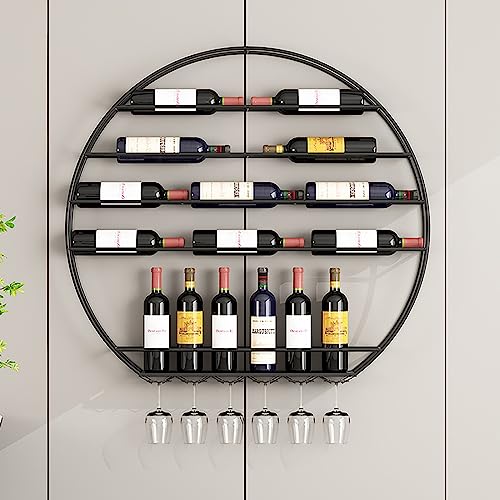 Casier À Vin Mural Rond,Porte-Verres À Pied En Verre À Vin,Étagère De Rangement Pour Bouteilles De Vin De Cuisine De Bar,Étagères De Rangement Flottantes,Support Pour Bouteille De Champagne ( Color :