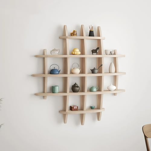 TAUIANE Porte-Tasses à Thé Chinois en Bois Massif, Support de Théière Murale, Étagère Décorative pour Accessoires Thé, Présentoir Rangement pour Salon Cuisine Bureau et Usage Commercial,002,90cm