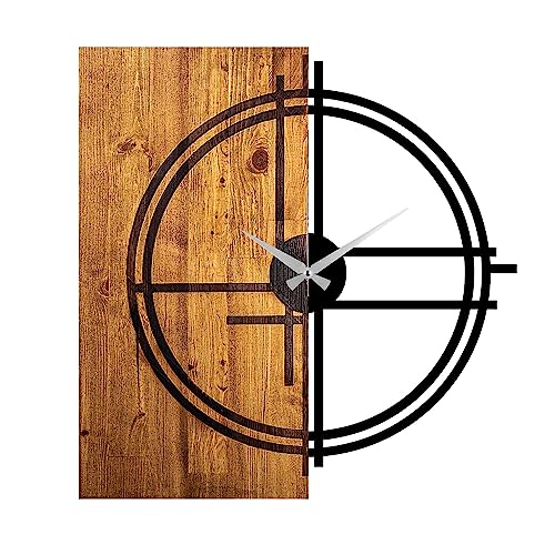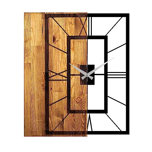 Uniquewise Clockswise Quickway Horloge Murale décorative Moderne avec Cadre en métal Noir sur Planche rectangulaire en Bois, pour Salle à Manger, Salon ou Cuisine, 50,8 cm de diamètre, Marron