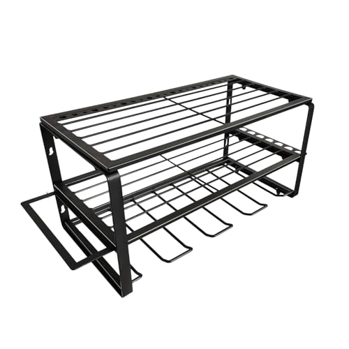 DAIMANN - Étagère murale en acier avec 4 compartiments et étagères en grille, panneau porte-outils de travail peu encombrant, pour garage et atelier, facile à installer