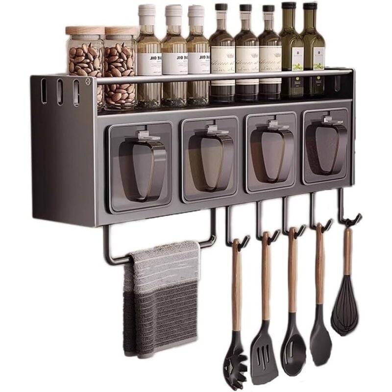 Étagère à épices murale en acier inoxydable avec crochets – Étagère suspendue au-dessus de la cuisinière, organiseur d'ustensiles de cuisine pour
