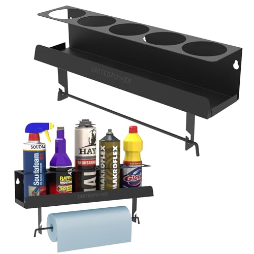 UNITEDPOWER 5 aérosols/porte-serviettes en papier, support de rangement pour bouteilles de peinture, étagère murale en acier, organisateur d'outils pour garage, espace de travail artisanal et maison