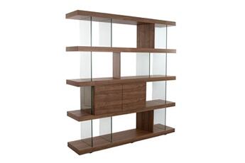 bibliothèque compo de verre et étagère coloris noyer
