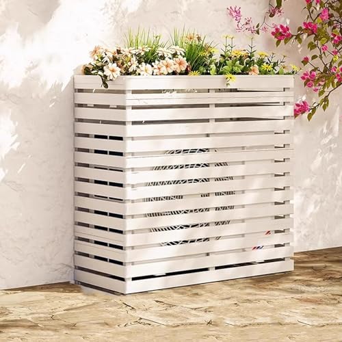 TRUNXUCL Cache Climatiseur Exterieur, Couvertures de Climatiseur en Bois pour L'extérieur, Étagère Plante Cache Climatiseur extérieur, pour la Protection a L'extérieur pour Cacher le Climatiseur (Col