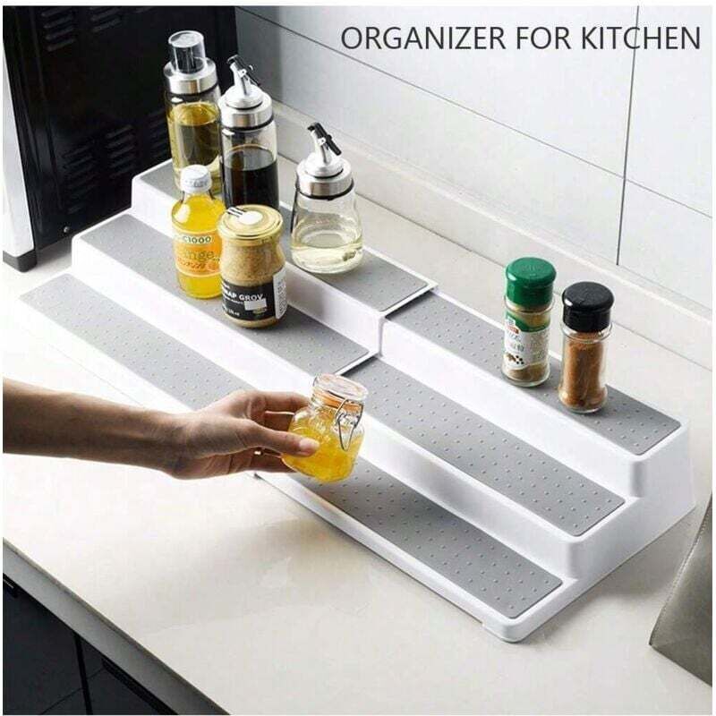 Étagère à Épices Extensible à 3 Niveaux, Étagère à Épices pour Armoire et Table de Cuisine Epices Pots Rangement et Antidérapante Étagère de Cuisine Organiseur pour Garde-manger ou Comptoir