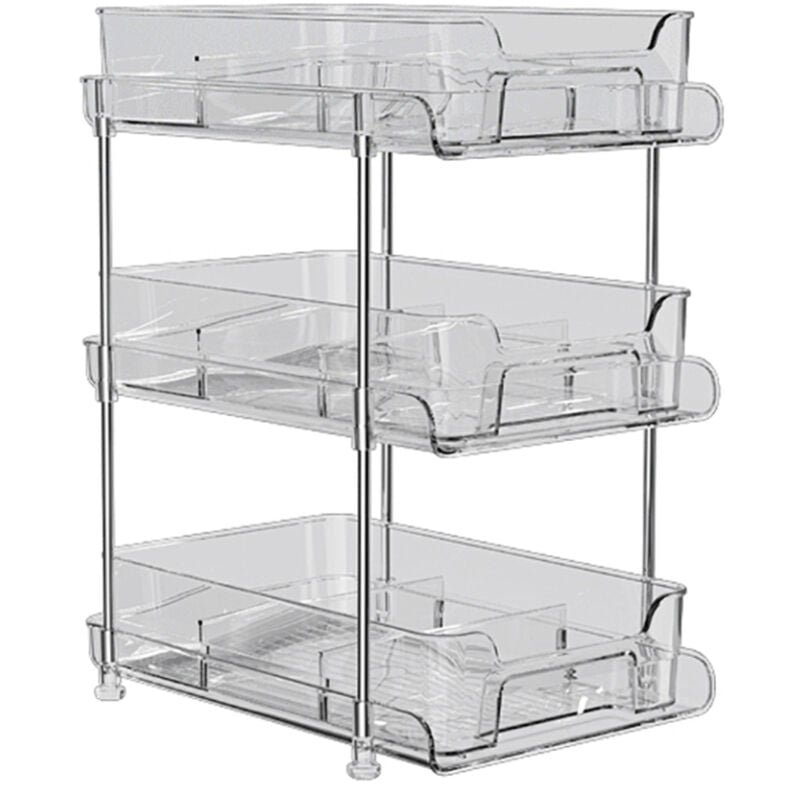 Sezanrpt Organisateur de tiroir à épices en acrylique réglable de 30 cm à 60 cm de large, étagère d'organisation à 4 niveaux pour tiroir de cuisine, étagère à épices pour tiroir de cuisine