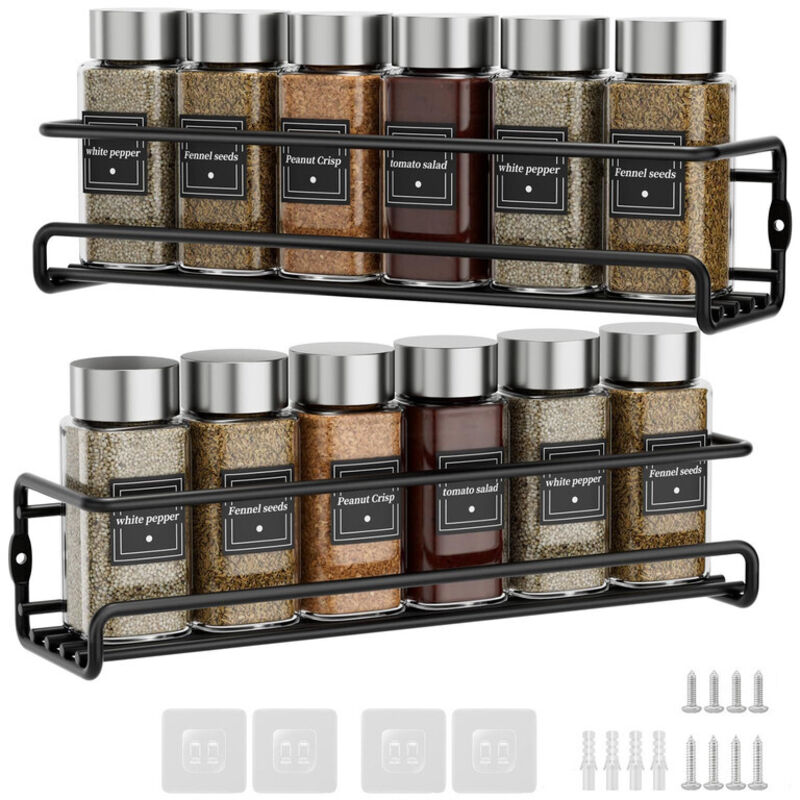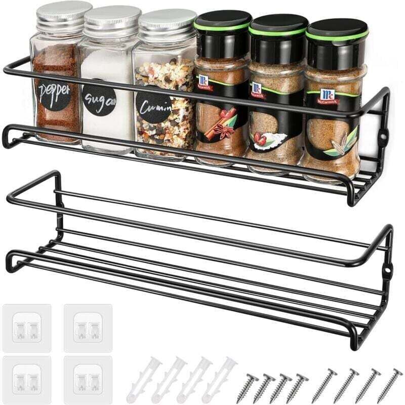 ZVD - 2 Pcs Etagere a Epices Murale, Porte Epices Cuisine avec Crochets Autocollants et Vis, sans Percage, étagère à épices pour Cuisine Salle de