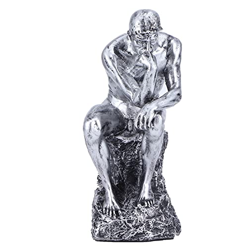HERCHR Statue de penseur, Le Silence est Statue d'or Sculpture de penseur Figurine Abstraite créative pour Ornement d'étagère de Bureau à Domicile(Argent)