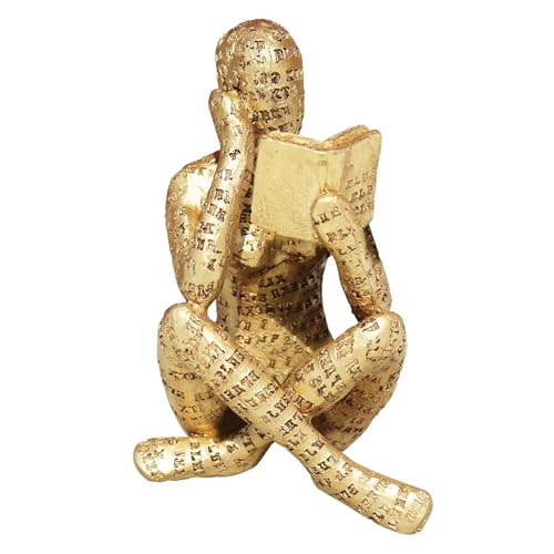 Figurine de Femme de Lecture dorée, Statue de penseur pour décoration de la Maison, Sculptures esthétiques abstraites Modernes en résine, Petite Statue dorée pour étagère, Salon, Salle à Manger,