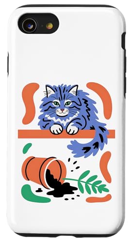 Silly Cat Fait Tomber la Plante de l'étagère Coque pour iPhone SE (2020) / 7/8