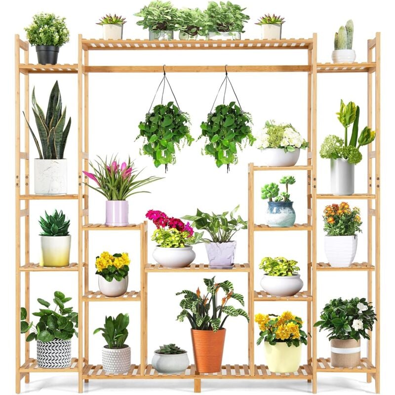 Costway - Support pour Plantes en Bambou à 9 Niveaux, Porte-Plante Dispositif Anti-basculement Charge de Chaque Étagère 10 kg, Support de Suspension