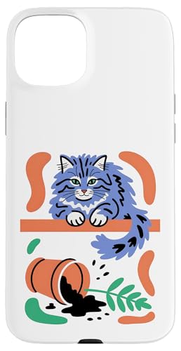 Silly Cat Fait Tomber la Plante de l'étagère Coque pour iPhone 15 Plus