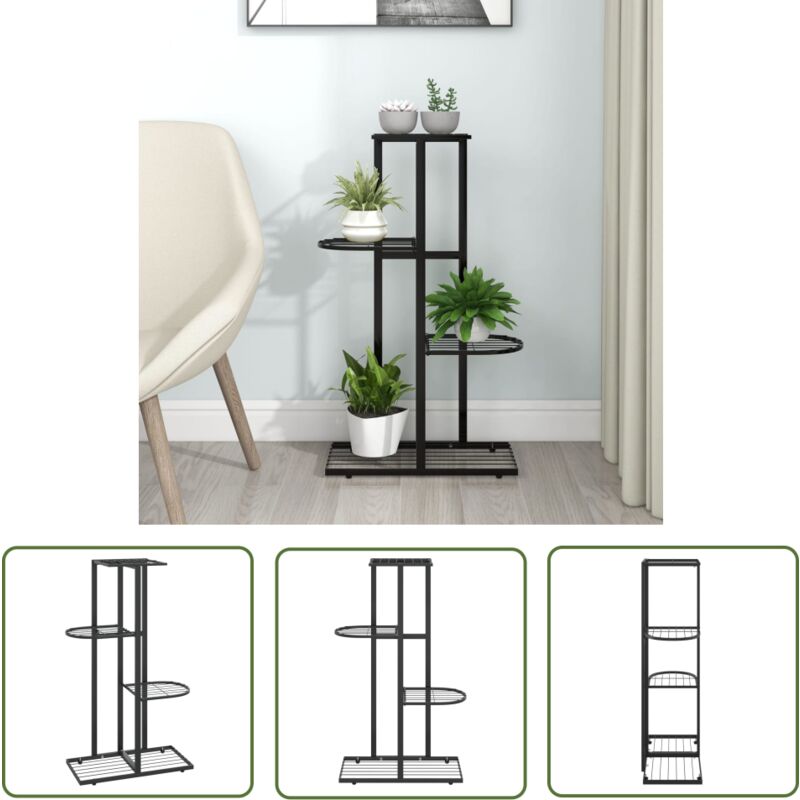 The Living Store - Support pour plantes 4 niveaux 43x22x76 cm Noir Métal - Support Plante - Jardinerie - Rangement Plantes - Étagère Plantes