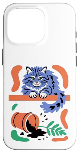 Silly Cat Fait Tomber la Plante de l'étagère Coque pour iPhone 16 Pro