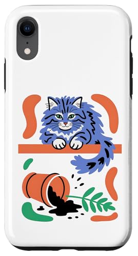 Silly Cat Fait Tomber la Plante de l'étagère Coque pour iPhone XR