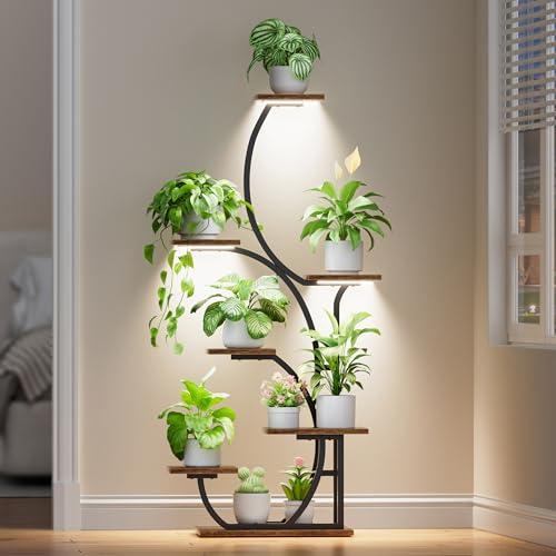 JUSTOGO Support pour plantes d'intérieur avec lampes de croissance, étagère haute pour plantes d'intérieur multiples, grand support d'angle de 165,1 cm, support de fleurs en métal pour salon, maison