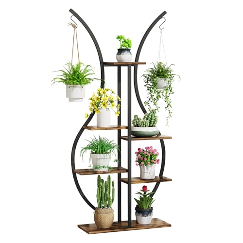 locwanot Support pour plantes à 6 niveaux pour intérieur et extérieur – Grande étagère d'angle en métal avec crochets de suspension pour décoration de la maison, plusieurs supports d'étagère, étagères